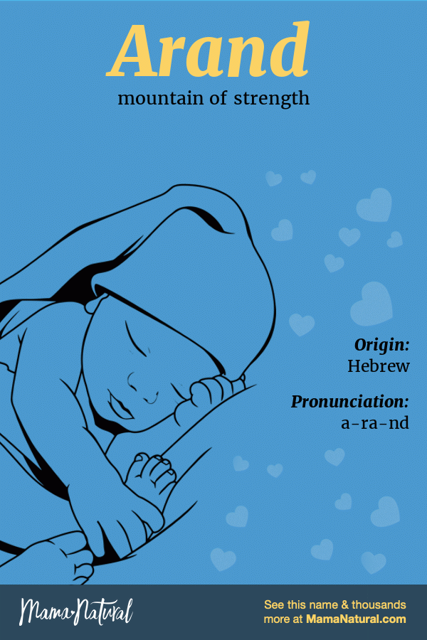 Boy Arand Arand means: mountain of strength. Arand Name Origin: Hebrew Pronunciation: a-ra-nd Share your thoughts about Arand Share Popularity Alternatives Infographic of Arand name meaning, which is mountain of strength Ask your friends & family about Arand… Share Pin Tweet Email Text Arand Name Popularity How popular is the name Arand? Here’s everything we know. Sorry, popularity data for the name Arand is not available. Names Like Arand If you like Arand, you’ll love these other names like Arand. What names sound like Arand? If you like how Arand sounds, you might also like these names that sound like Arand. Name Meaning Origin Popularity Other Gender Arend Mountain of strength; eagle ruler Hebrew Arnd Eagle ruler German What names are similar to Arand? Find a name that’s like Arand, but just a little bit different. Name Meaning Origin Popularity Other Gender Aland Precious German Aran Mountain of strength Hebrew Arland Pledge, oath Gaelic Armand A French form of Annin and Herman. French Brand Sword; fiery torch, beacon Scandinavian Share your thoughts on the name Arand Cancel ReplyYour email address will not be published. All fields are required *Name * Email * Your Thoughts * Δ Search Baby Names Quick Search Search Go Advanced Search Name Starts With Ends With Gender Any Boys Girls Only show unisex names Current Popularity [U.S.] Any More Popular Less Popular Origin Select origin… English Latin Hebrew Greek German Irish French American Spanish Arabic Aboriginal African American Ancient Anglo-Saxon Arabic Aramaic Armenian Arthurian Legend Asian Aztec (Nahuatl) Bulgarian Celtic Chinese Danish Dutch Egyptian English European French Gaelic German Greek Hebrew Hungarian Indian (Sanskrit) Indonesian Irish Israeli Italian Japanese Latin Modern Native American Persian Polish Polynesian Portuguese Russian Scandinavian Scottish Slavic Spanish Turkish Unknown Vietnamese Welsh Yiddish Meaning Number of Letters Min Max Syllables [BETA] Min Max Search Baby Names