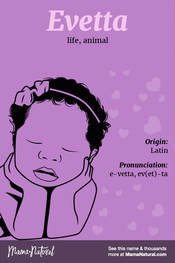 Girl Evetta Evetta means: life, animal. Evetta Name Origin: Latin Pronunciation: e-vetta, ev(et)-ta Share your thoughts about Evetta Share Popularity Alternatives Infographic of Evetta name meaning, which is life, animal Ask your friends & family about Evetta… Share Pin Tweet Email Text Evetta Name Popularity How popular is the name Evetta? Here’s everything we know. Sorry, popularity data for the name Evetta is not available. Names Like Evetta If you like Evetta, you’ll love these other names like Evetta. What names sound like Evetta? If you like how Evetta sounds, you might also like these names that sound like Evetta. Name Meaning Origin Popularity Other Gender Eyvetta French Ivetta Yew French Yvetta Yew German What names are similar to Evetta? Find a name that’s like Evetta, but just a little bit different. Name Meaning Origin Popularity Other Gender Eevette French Eletta Footloose Greek Elitta Elite Latin Elletta Footloose; other, foreign Greek Ervette Sea friend English Etta A diminutive form of Henrietta, “mistress of the home.” Italian Evita Life, animal Latin Eyvette French Ivett Yew French Ivette French Lavetta Cleansed Latin Yvette Yew French Share your thoughts on the name Evetta Cancel ReplyYour email address will not be published. All fields are required *Name * Email * Your Thoughts * Δ Search Baby Names Quick Search Search Go Advanced Search Name Starts With Ends With Gender Any Boys Girls Only show unisex names Current Popularity [U.S.] Any More Popular Less Popular Origin Select origin… English Latin Hebrew Greek German Irish French American Spanish Arabic Aboriginal African American Ancient Anglo-Saxon Arabic Aramaic Armenian Arthurian Legend Asian Aztec (Nahuatl) Bulgarian Celtic Chinese Danish Dutch Egyptian English European French Gaelic German Greek Hebrew Hungarian Indian (Sanskrit) Indonesian Irish Israeli Italian Japanese Latin Modern Native American Persian Polish Polynesian Portuguese Russian Scandinavian Scottish Slavic Spanish Turkish Unknown Vietnamese Welsh Yiddish Meaning Number of Letters Min Max Syllables [BETA] Min Max Search Baby Names