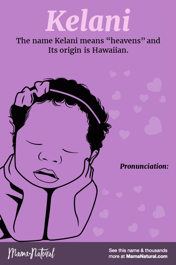 Infographic of Kelani name meaning, which is The name Kelani means "heavens" and Its origin is Hawaiian.