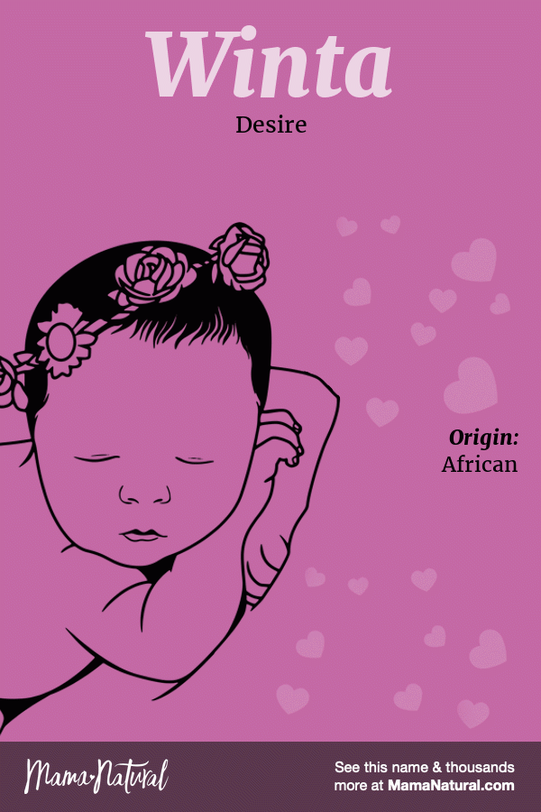 Girl Winta Winta means: Desire. Winta Name Origin: African Share your thoughts about Winta Share Popularity Lists Infographic of Winta name meaning, which is Desire Ask your friends & family about Winta… Share Pin Tweet Email Text Winta Name Popularity How popular is the name Winta? Here’s everything we know. Sorry, popularity data for the name Winta is not available. Lists With Winta Find inspiration in these baby girl name lists featuring the name Winta. Unpopular Girl Names That’ll Change Up Your List // 237 names Discover a rare gem with unpopular girl names. They may not be rocking the charts yet, but there’s a lot to love about these unique monikers. Elegant Girl Names That Always Turn Heads // 148 names Beautiful to the eye and to the ear, elegant girl names are always in demand. With their upscale air, elegant girl names are naturally polished and never go out of style. Browse our list of these gems here. Share your thoughts on the name Winta Cancel ReplyYour email address will not be published. All fields are required *Name * Email * Your Thoughts * Δ Search Baby Names Quick Search Search Go Advanced Search Name Starts With Ends With Gender Any Boys Girls Only show unisex names Current Popularity [U.S.] Any More Popular Less Popular Origin Select origin… English Latin Hebrew Greek German Irish French American Spanish Arabic Aboriginal African American Ancient Anglo-Saxon Arabic Aramaic Armenian Arthurian Legend Asian Aztec (Nahuatl) Bulgarian Celtic Chinese Danish Dutch Egyptian English European French Gaelic German Greek Hebrew Hungarian Indian (Sanskrit) Indonesian Irish Israeli Italian Japanese Latin Modern Native American Persian Polish Polynesian Portuguese Russian Scandinavian Scottish Slavic Spanish Turkish Unknown Vietnamese Welsh Yiddish Meaning Number of Letters Min Max Syllables [BETA] Min Max Search Baby Names